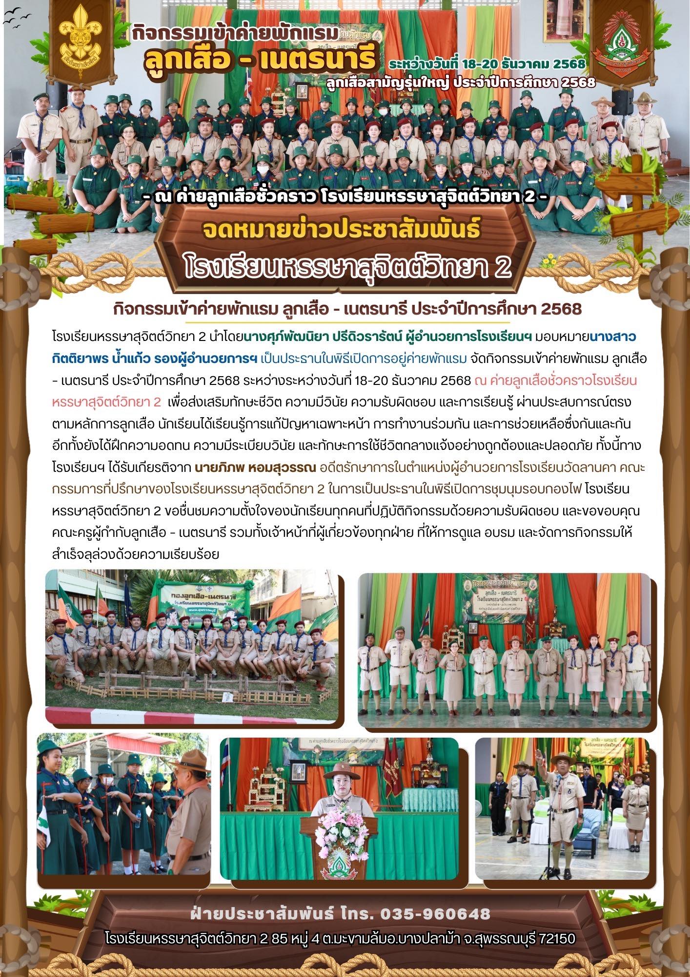 กิจกรรมการอยู่ค่ายพักแรม ลูกเสือ–เนตรนารี ประจำปีการศึกษา 2568 ระหว่างวันที่ 18-20 ธันวาคม 2568